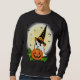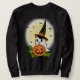 Cute Ghost Witch With Pumpkin and Full Moon Hallow Lång Ärmad Tröja