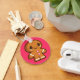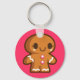 En söt illustration av en brun kaka av pepparkaksgubbe. Mjuka rosa-knappar och kraftigt frostade accenter på hans arm och ben. Ett tema för festlighet och roligt för jultomten julhelg.