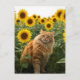 Cute ginger-katt i solblommorna fält vykort för postkorsning