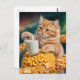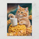 Cute Ginger Cat med Mjölk i rymden Vykort