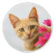 En nyfiken rödtabbe ser på dig och torkar från en blommar bugainvilla med öga, porträtt. Den här keramiska knoppen för att dekorera möbler är en presentidé för kattälskare. Ett sött ginger kattunge-foto taget av Katho Menden. http://www.zazzle.com/kathom_photo