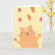 Cute Ginger Orange Cat Playing in Autumn Leaves Kort