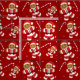 Julväv med pepparkaksgubbe kakor i jultomten. De leende illustrationerna av cookie i Julafton ligger i mönster med polkagrisar och snö. Strukturen har ett övergripande rött och vitt färg-schema och är redo för ditt helgdag-projekt.