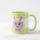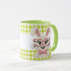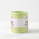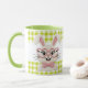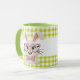Brighten your day with this adorable mug featuring a charming knitted style bunny. Cute pink heart shaped glasses and a matching bow tie, this sweet rabbit sits against a cheerful green and white gingham background. Perfect for Easter, spring, or any bunny lover, this mug makes a delightful gift for kids, friends, or yourself.