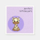 Den här födelsedagslöjan visar en baby giraffe-tecknad med stort svart ögon på geometrisk lila. Giraffen är så söt att det kommer att fästa allas uppmärksamhet! Om du är tittar för att få tag på sötgiga party för din flickas födelsedag, titta inte längre.
