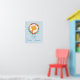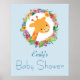 En babydusch poster med en illustration av en söt giraffe ansikte, omgiven av en krans av tropiska vattenblommor. Färgfull och söt.