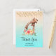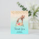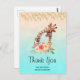 Tack för vykortet med ett sött teckning i vattenfärger i mamma och baby giraffe. Mor giraffe vilar på huvudet ovanpå baby giraffe, älskande och förtjusande. Söt rosa, gult, grönt vattenfärgsblomma bouquet placerad under detta älsklingspar. En övertoningsbakgrund skapat med en delikat turkosa blå färg som blandas i ett sandbrunt färg.