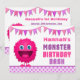 Cute Gire Monster Birthday Bash Inbjudningar