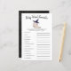 Kute halloween-temat babydusch baby ord-spelkort med en illustration av ett spöke med en häxhatt. Listan över ord på detta kort gäller spädbarn, och den är uppdelad. Gästerna kommer att tävla, som kan lösa upp alla först! SVAR NYCKEL: 1. bilsäte 2. mjölk 3. lekplats 4. nappar 5. blöjor 6. rockstol 7. dagis 8. baby monitor 9. svalg 10. formel 11. gummiducky 12. barnvagn.