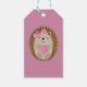 Cute Girl tecknad hedgehog kramar en rosa hjärtgåva eller favoriserar taggar.