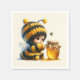 Pappra blöjor med söt bild. En flicka i en skurkaktig bidräkt med ett bi vid hennes sida. Titta över en burk av honung.