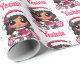 Fira julhelgen med den här roligten och festa designen med en vacker flicka i en röd klänning med en julhatt och hennes söta valp 🐶. peppermint-virvelscandies på sidan. Få presenter att stå under träd med denna lekfulla, glatta utformning! Lägg till barnets namn för personlig kontakt. 🎄
