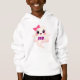 Imagine a charming little ghost, complete with a sweet pink bow and sparkling purple eyes, gently saying "Boo!" in a playful, friendly manner. It’s hard not to smile at such an endearing spirit!