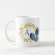 Cute Girly Guld Gnistra och Blue Löv Monogram Namn Kaffemugg