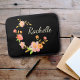 Laptop sleeve med en svart bakgrund med blommor av orange, rosa och grönt och en anpassningsbar första namn monogram