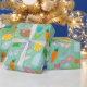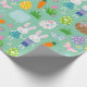 Cute Glad påsk Bunny Eggs Vår blommor Wrapping Papper har söta bunnier med Påskägg, vår blommor, Påsk, basket, fjärilar och morötter med texten "Glad påsk" i modernt vitt skript på gröntens bakgrund. Perfekt för Påsk.