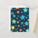Cute gult, röda och blå glödande stjärnor på blå mönster-bakgrund.