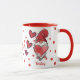 Det här är ett förtjusande mugg att ge någon för valentins dag. Den här designen har en söt gnomkvinna och man som håller ett hjärta i händer med en punkt och ett hjärta i mönster och ord kärlek på framsidan av mugg. Namn under gnomerna är anpassade med parets namn.