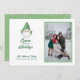 Roligt och festlighet, dessa fotokort är det bästa sättet att skicka varmt önskemål i julhelg. Utformningen har en söt grönt trädgårdsgnom som ser ut som tomten med snöflingor på baksidan och framsidan. Byt ut bild mot mallen och lägg till familjen namn och året.