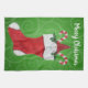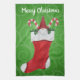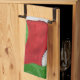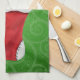Den här kökshandduken är grönt med lättare gröntar och en röd och vit julklapp som har en gnom och polkagrisar i toppen mellan gröntens löv. Anpassa God jul-texten till mallen.