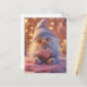 En charmerande gnom med ett mjukt vitt skägg sitter på en plush rosa matta. Han har en hjärtformad kaka nära bröstet och sin ögon gnistra med ett milt ljus. Bakgrunden är fylld med mjukt, varmt ljus som skapar en mysigt och inbjudande atmosfär. Den här designen är perfekt för alla som kärlek söta figurer, har hjärtslitande bilder eller behöver en aning vintermagi i livet.