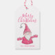 Dessa unika Juletiketter för vit och rosa personlig har ett God jul hälsning och en söt gnom i rosa klädsel. Med mallen kan du enkelt lägga till din familj namn.