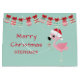 Den här söta julklappen har en underbar flamingos med julhatt, prydnadsföremål och texten "God jul". Lägg till ett namn för att anpassa. Perfekt för dessa speciella helgdag.