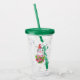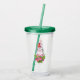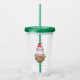 Akryltorktumlare med söt och vismisk design som har en fin penguin med en röd tomhatt. Stående bakom en blombukett med rosa och vita stripade polkagrisar.