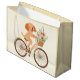 Cute illustrerar en Goldendoodle-hund som cyklar med fullt basket i vår blommor, Perfekt för djurälskare eller hund som tycker om att cykla.