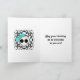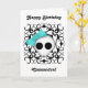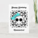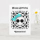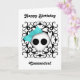 Den godhjärtade getpunkskallen med ett ljusblått slag mot en svart bakgrund av Victorian kaleidoskop. Visas här på ett söt vitt födelsedagskort för tonåring- eller interpoleringsflickor. Texten är anpassade. Ändra den innan du beställer.