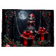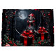 Cute Gothic Jul Elf. I centrum av denna magiska miljö står hennes ögon som gapar i ljuset av fullt som stjärnor på en ren natt. Hennes svarta och röda klänning går försiktigt runt hennes slender ram, ge henne en aura av elegans och mysterium. Området är försett med ornat svart och röd Juldekorationer som verkar vara bortglömda reliker från en annan tidpunkt. De ram på scenen, ge det en vacker festlighet som både är spännande och dyrbara.