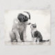 Cute Gräns Collie & Kitten Vänskap Vykort