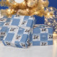 Den här julklappen med pappra rullar har två vackra gräns-kolliesvalpar på en vinterscen i snö i en vattenfärg i stil. Festivet mönstras med kollien bild i en kontrollerad design, med blå fyrkanter och text mellan. För hundälskare kan presentfigursättningen vara personlig med en namn eller annan text för den avslutande beröringen.