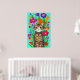 Cute folk art stil söt grönt, grått-katt. Den här konsten är AI-genererad. Söt blå, lila och rödblommor med tealbakgrund. generativeinnehåll