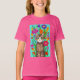 Cute folk art stil-skjorta med en söt katt. Den här konsten är AI-genererad. Söt blå, lila och rödblommor med tealbakgrund. generativeinnehåll