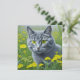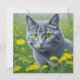 Cute ai grått-katt med gult ögon omgiven av blommor storybook stil illustration.