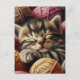 Cute Grått Kitten Napping i Bollar i garn Vykort