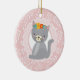 Cute Grått Kitten Rosa White Cat Julgransprydnad Keramik