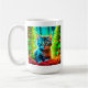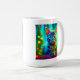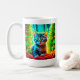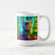 Söt grått-kittens sitta på dubbla framför upplyst kaffe av Julgranar mugg.