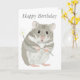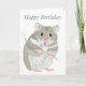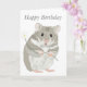 Det här hälsning-kortet har en söt hand plockade grått och vit hamster som håller en blomma mot en vit bakgrund. Den redigerbara framtexten lyder "Grattis på födelsedagen". Texten i texten är också helt redigerbar så att du kan lägga till ett eget meddelande om du vill.