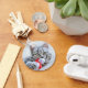 En nyckelkedja med ett sött julfoto av ett grått tabby katt som spelar en röd tomhatt. Hans stora fluffy tass gör fotot extra härligt.