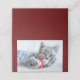 Kort med ett sött julfoto av en grått tabby katt som spelar en röd tomhatt. Hans stora fluffy tass gör fotot extra härligt.