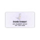 Adressetiketter med en söt illustration med en gråaktig lila dinosaurie.