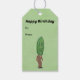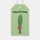 These birthday gift tags are green with a cute pickle head man in a brown suit. He has big green pickle with a face for a head. Customise all your text with the templates.