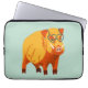 Lustigt gris laptop sleeve med en illustration av ett digitalt målat galtar med stora betar och hjärtformade glasögon i ljust gult, orange och blått färg.