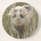 Den här söt sandstenen underlägg ett vackert foto av en söt rosa gris som kommer från ett högt gräs.