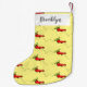 Cute grog i en röd sockhoppande tecknad liten julstrumpa