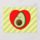 Cute Grönt Avocado Tecknad i rött hjärta Vykort