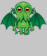 Vector tecknad illustrerar den söta grönten baby Cthulhu monster med stor orange öga. Märkre: cthulhu, octopus, monster, lovecraft, chibi, bläckfisk, hav, hav, djur, varelse