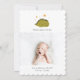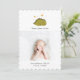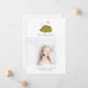 Mall för födelseanmälan för dinosauer baby i grönt med en träffande illustration av grönt baby dinosauer som sover under gultens stjärnor på framsidan. Det finns 2 bilder av ditt nyfödda som kan läggas till på detta kort (fram och tillbaka) och ett utrymme på baksidan för ditt personliga meddelande. De pappra egenskaperna är vackra runda kammusslor. Perfekt kort för att meddela att nyfödd bebis kommer med sin födelsestatus. Underbar för både pojke och flicka. Perfekt för alla säsonger!
